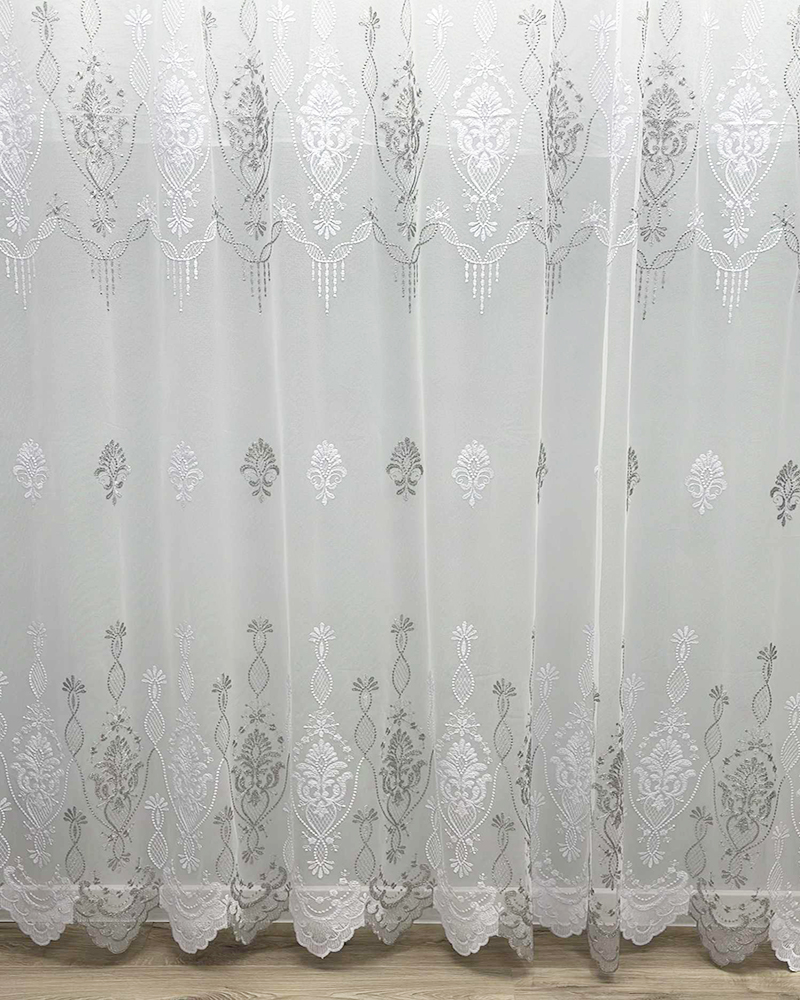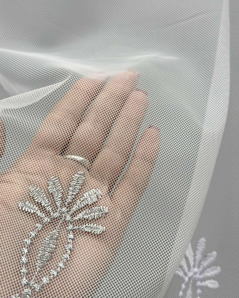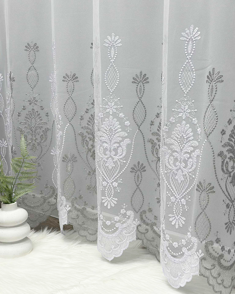 Siuvinėtas tinklelio tipo dieninių užuolaidų audinys – tai aukštos kokybės turkiškas audinys, pasižymintis subtiliu raštu, lengvumu ir elegancija. Tinklelio struktūra leidžia šviesai švelniai patekti į patalpą, suteikiant erdvės ir jaukumo pojūtį. Šis audinys puikiai tinka tiems, kurie vertina šviesų, harmoningą ir estetišką interjerą.