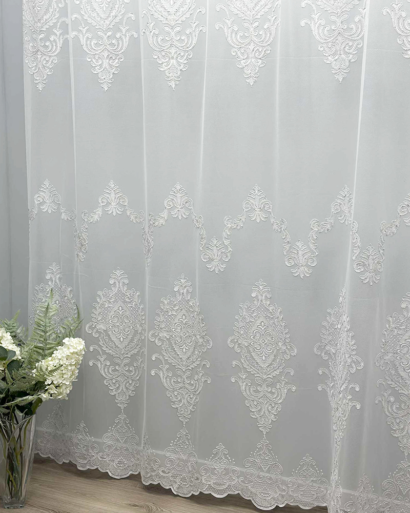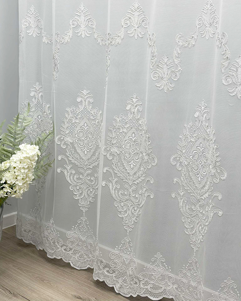Šis dieninių užuolaidų audinys - puikus sprendimas, siekiant suteikti interjerui lengvumo, šviesos ir subtilaus išbaigtumo. Siuvinėtos užuolaidos gali būti puiki galimybė sukurti ypatingą ir prabangų kambario įvaizdį. Jos dažnai naudojamos svetainėse, miegamuosiuose ar kituose prestižinės aplinkos kambariuose.