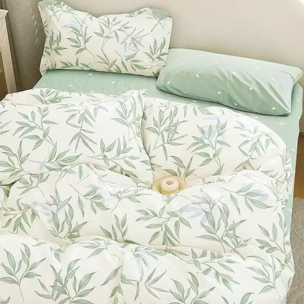 Žalia spalva dažnai siejama su ramybe bei atgaiva. Žali atspalviai gali suteikti ramybės ir natūralumo pojūtį jūsų miegamajame. Tai daugialypė spalva, tuo pačiu sukurianti lengvumą ir gaivumą. Neapsiriksite pasirinkę žalsvų atspalvių patalynę, kuri šioje patalynėje derinama kartu su šviesia, pieno spalva, taip sukurdama harmoningą ir šiuolaikišką interjerą.