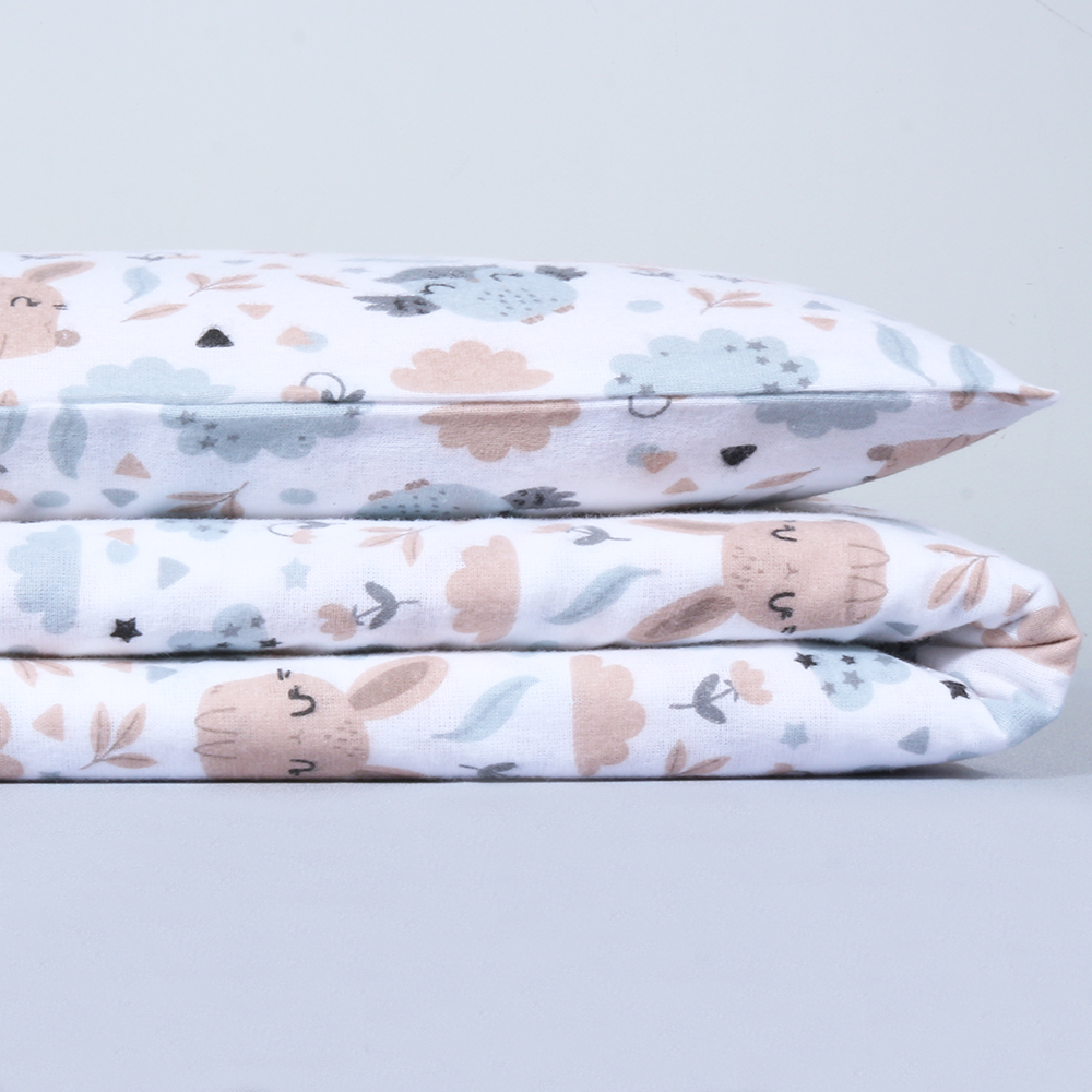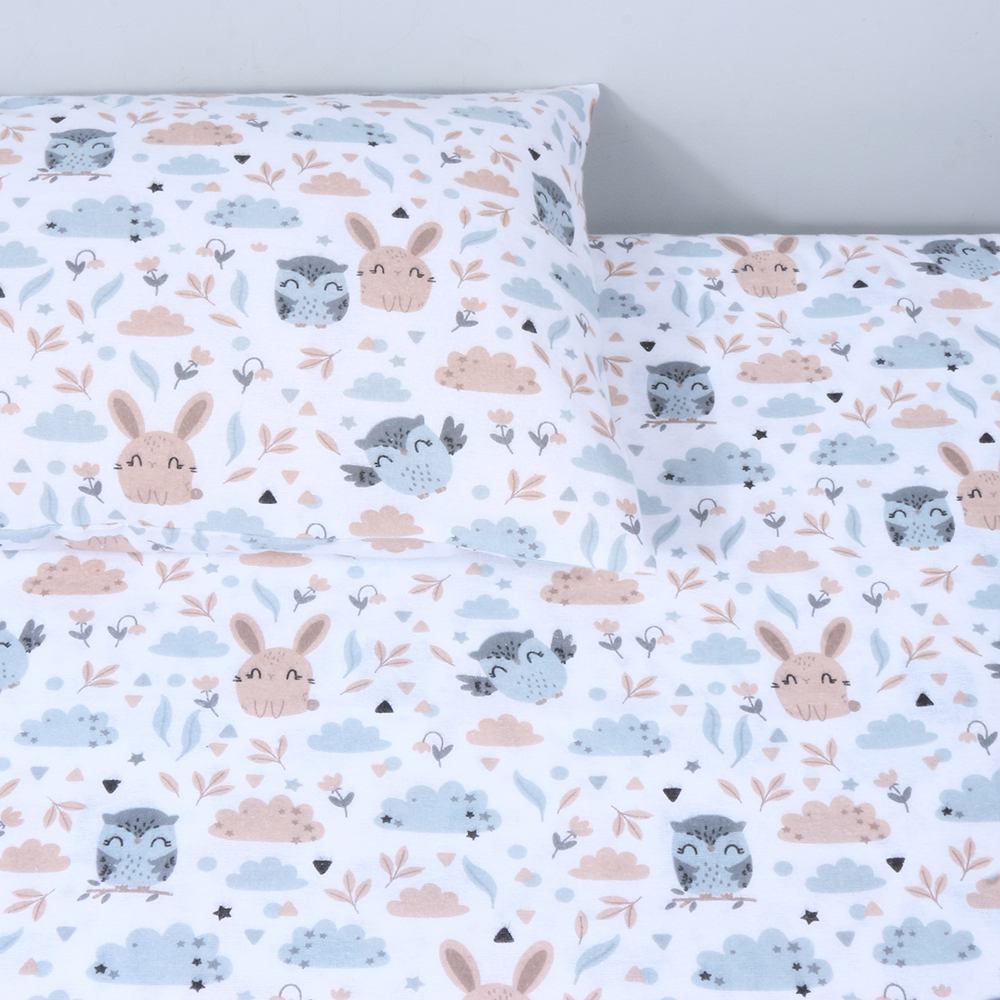 Audinys gerai sugeria drėgmę ir padeda palaikyti komfortišką pojūtį miego metu. Patalynė pagaminta iš 100 % medvilninės flanelės, atitinkančios OEKO-TEX® Standard 100 reikalavimus – tai reiškia, kad audinys patikrintas dėl kenksmingų medžiagų ir tinkamas jautriai kūdikio odelei.