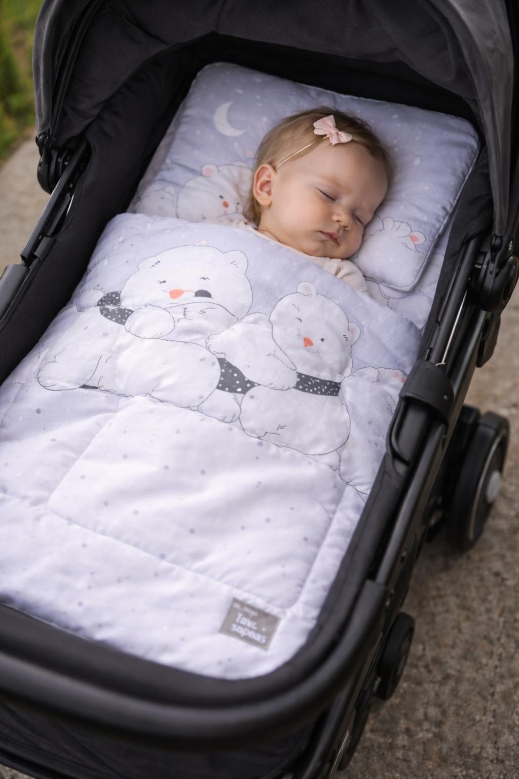 Gimus kūdikiui, standartinio dydžio antklodėlės dažnai būna per didelės. Siuvame puikius komplektukus, kurie tiks naudoti ir lovytėje, ir lopšelyje, ir vežimėlyje. Komplektukas idealus prikloti naujagimį, ir būna naudojamas mažiausiai iki pusės metukų. Komplektukas pasiūtas su didele meile ir švelnumu. Neabejokite, Jūsų mažylio miegas bus sveikas ir ramus, nes siuvame tik iš natūralių ir kokybiškų medžiagų.