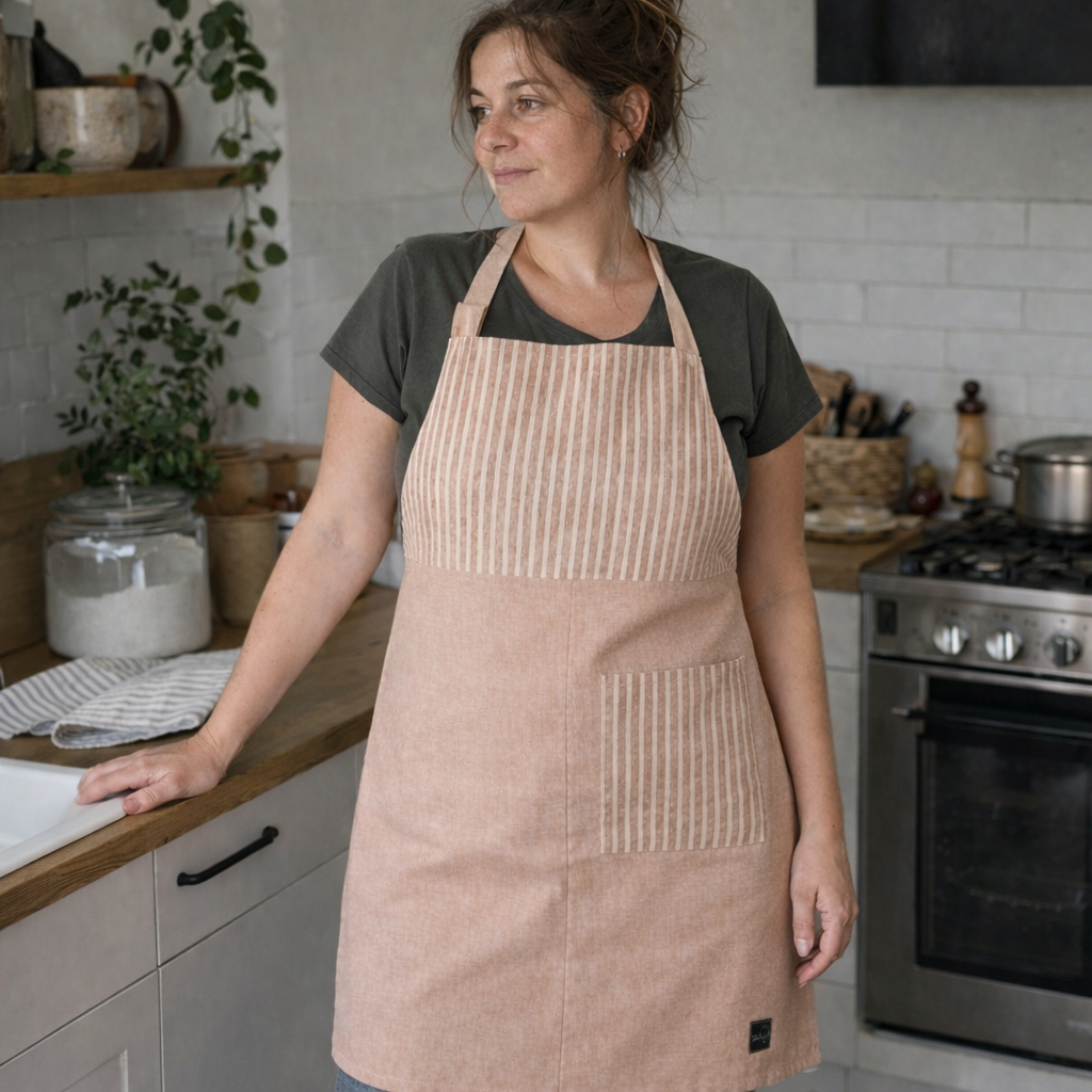 Pagaminta iš natūralaus lino, ji leidžia odai kvėpuoti, yra lengva, tačiau itin patvari. Audinys švelniai priglunda, nevaržo judesių ir su kiekvienu skalbimu tampa dar minkštesnis. Tai prijuostė, kuri tarnaus ilgai ir išlaikys savo estetiką net intensyviai naudojant.
