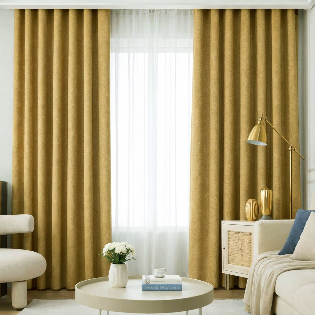 Pats užuolaidų audinys nėra storas, tačiau turi subtiliai gražų, sunkesnį kritimą. Medžiaga labai maloni, minkšta, lengvai klostuojasi. Užuolaidos gana neblogai sulaiko šviesą - užkabinus užuolaidą ant lango, į kurį šviečia saulė, šiek tiek matosi lango rėmai, bet žmonių siluetų nesimato.