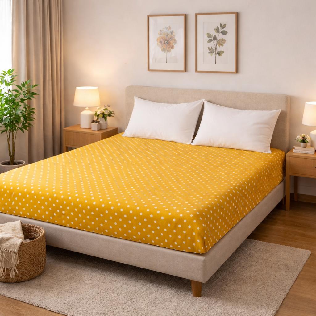 Medvilninė paklodė be gumos Geltona taškuota, 155x220 cm