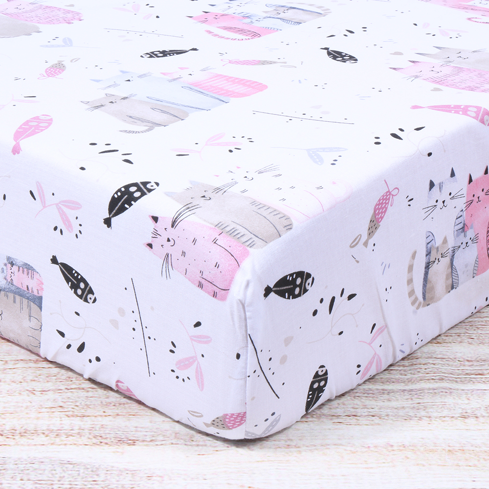Medvilninė paklodė su guma Katinėliai, 70x140 cm