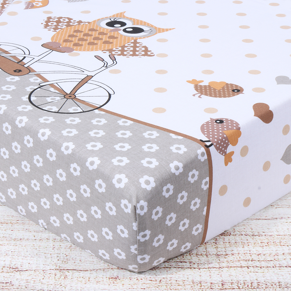 Medvilninė paklodė su guma Pelėdos, 80x160 cm