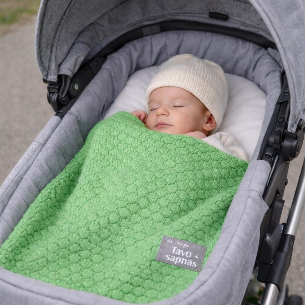 Pamirškite laikus, kai megztą užklotuką galėjo turėti tik auksarankės, mokančios megzti, būsimos mamos ar močiutės. Kad užtikrintumėte savo mažyliui šiltą ir jaukią aplinką, siūlome Jums šį kokybišką ir natūralų apklotėlį, kuris yra megztas iš ypač plonos ir lengvos, bet šiltos Merino vilnos. Toks pledukas ypač tinka naujagimiams, neišnešiotiems kūdikiams, nes yra plonas ir lengvas, bet pakankamai šiltas. Su šiuo pleduku - jauki, švelni ir minkšta kūdikio diena!