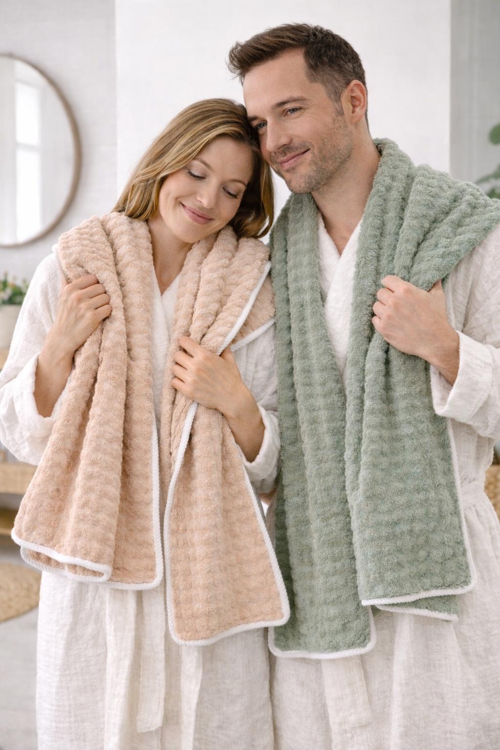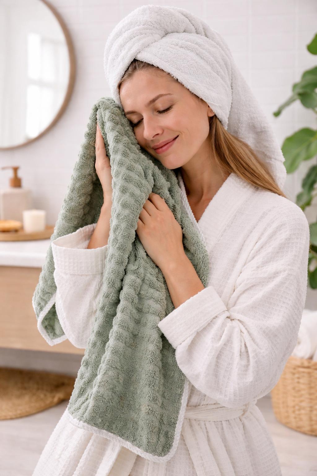 • Šio audinio rankšluostis gali sugerti 3 kartus daugiau vandens nei sveria pats;