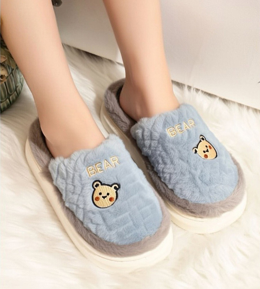 Šlepečių vidus dengtas minkštu pliušo audiniu, tai suteikia šilumos kojai. Išorėje - dirbtinis kailiukas ir žaisminga meškiuko aplikacija. Storas, bet labai lengvas padas suteikia komfortą vaikščiojimui.