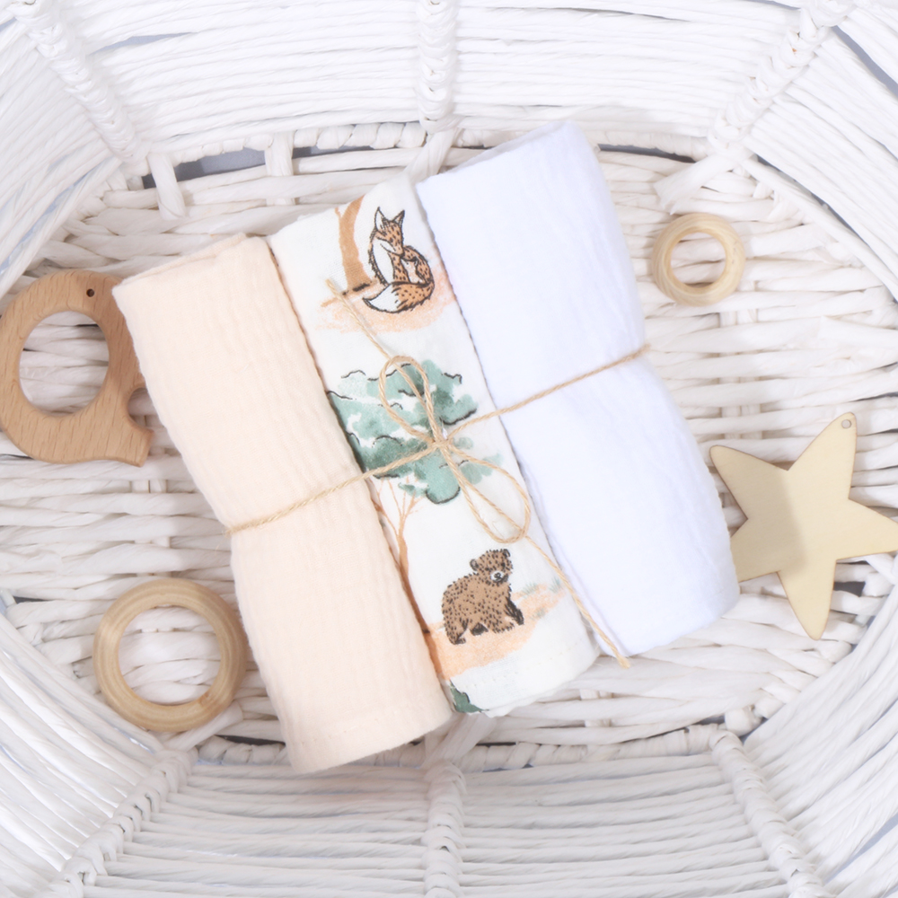 Muslino merliukai kūdikiams 30X30 cm, 3 vnt. – švelnūs, kvėpuojantys ir natūralūs