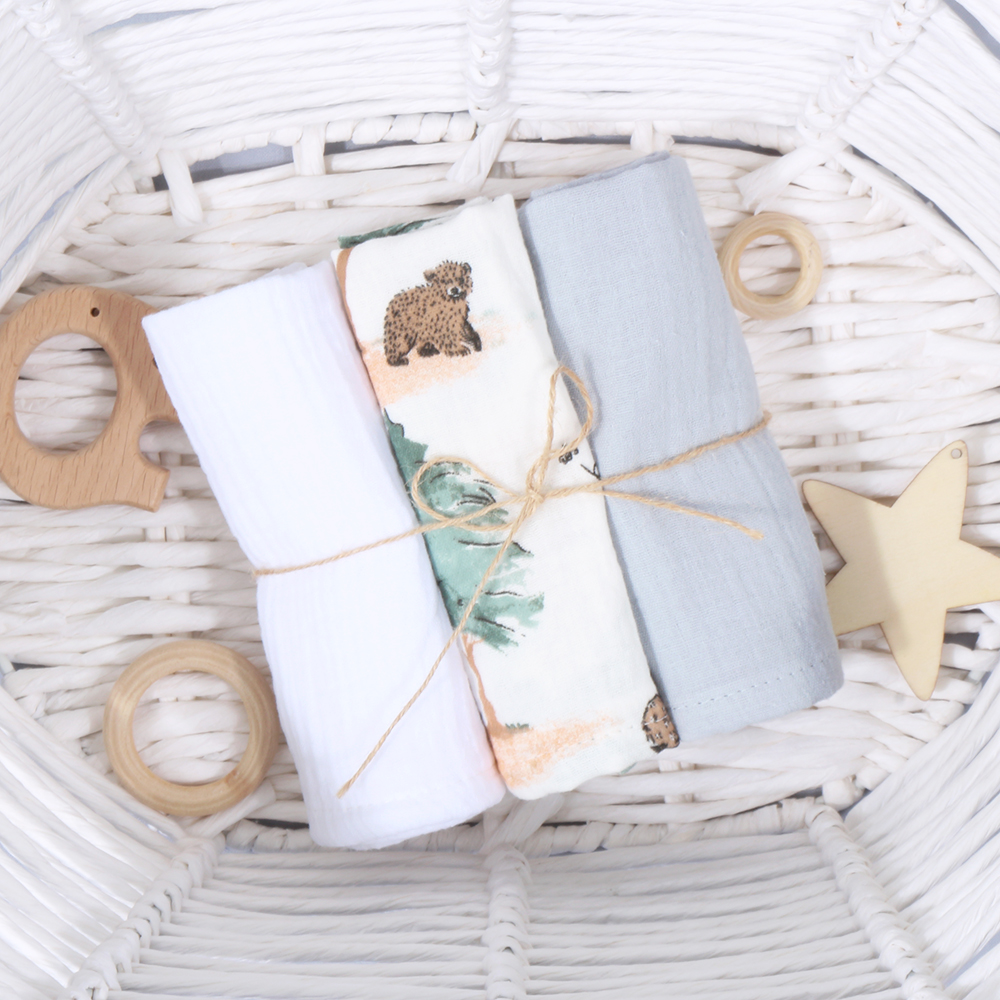 Muslino merliukai kūdikiams 30X30 cm, 3 vnt. – švelnūs, kvėpuojantys ir natūralūs