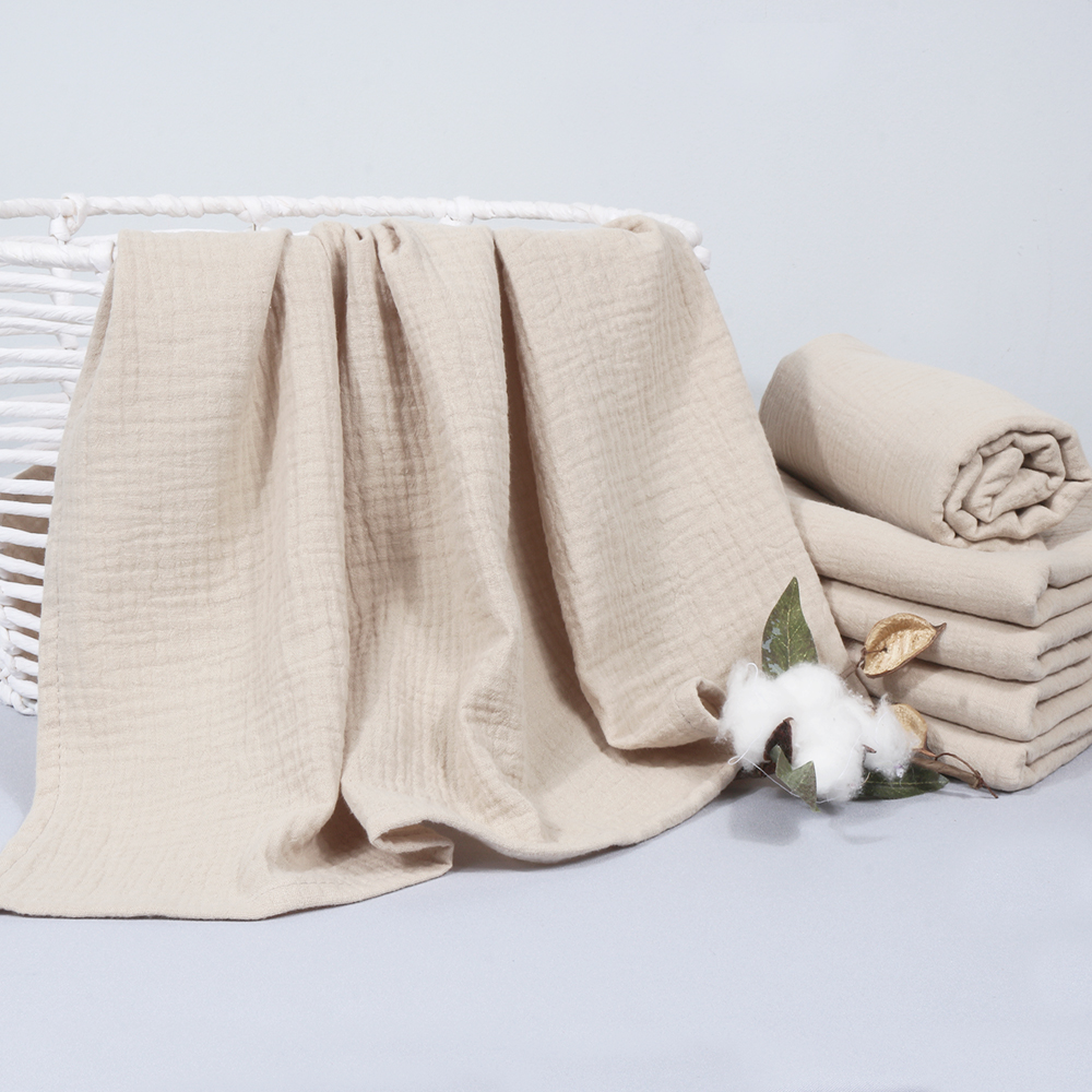Muslinas – ypatingai lengvas, kvėpuojantis ir švelnus medvilninis audinys. Double Gauze struktūra užtikrina natūralų elastingumą, gerą drėgmės sugėrimą ir šilumos reguliaciją.