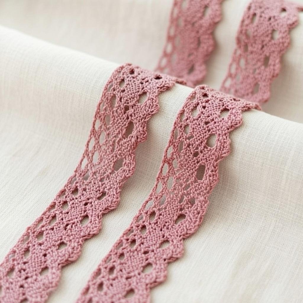 Dekoratyvi juostelė. Tinka staltiesių, rankšluosčių, patalynės papuošimui, įvairioms smulkmenoms ir tekstilės gaminiams dekoruoti.