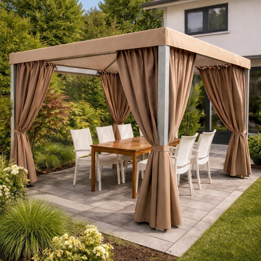 Terasa - tai ta vieta, kurioje ne tik galite pasislėpti nuo vėjo, saulės ar lietaus. Tai ir vieta šeimos bei draugų susirinkimams, ilgiems vakaro pokalbiams ar jaukioms popietėms su artimaisiais. Terasa tampa namų dalimi, lyg atskiru kambariu lauke, kuriame praleidžiate daug laiko. Tačiau kartais visgi norisi pasislėpti nuo pernelyg kaitrios saulės, o vėjuotą dieną - ir nuo vėjo gūsių. Jei turite nestiklintą, atviromis sienomis, terasą, pati geriausia išeitis - pasikabinti užuolaidas. Mūsų siuvamos užuolaidos puikiai apsaugo nuo saulės ar vėjo. Užuolaidos pasiūtos iš vandeniui atsparaus audinio, todėl jos sulaikys ir lietaus lašus. Taigi, net ir per lietų terasoje bus jauku ir malonu.