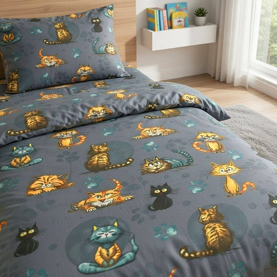 Šis vaikiškas patalynės komplektas pasiūtas iš 100% natūralios medvilnės – kvėpuojančio, švelnaus ir ilgaamžio audinio, kuris sukuria jaukų, sveiką miego klimatą be perkaitimo ar prakaitavimo.