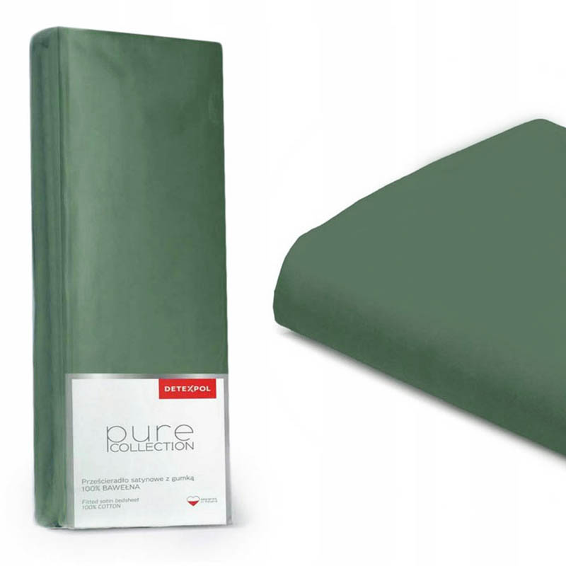 Pure Collection satino paklodė su guma GREEN, 160x200 cm
