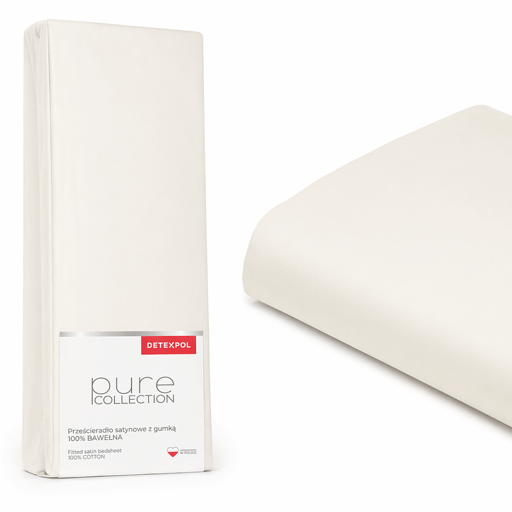 Pure Collection satino paklodė su guma ECRU, 180x200 cm