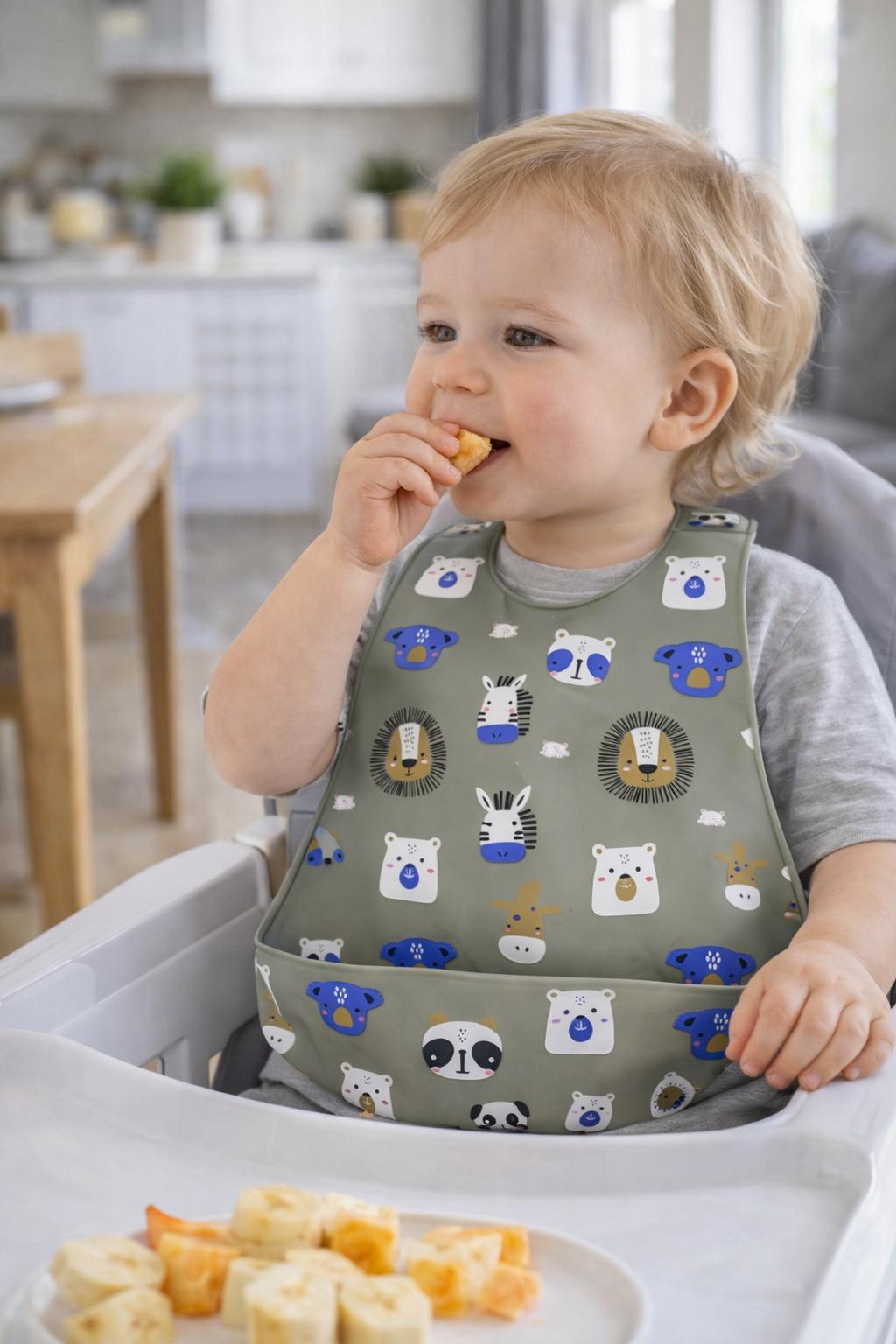 Šis neperšlampamas silikoninis seilinukas padės apsaugoti jūsų kūdikio drabužėlius valgymo metu. Minkštas ir lankstus silikonas užtikrina patogumą, o praktiška didelė kišenė sulaiko maisto likučius, kad jie nenukristų ant vaiko rūbelių ar grindų.