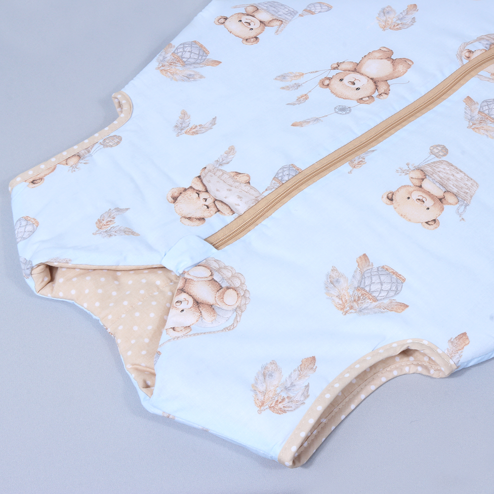 Pagamintas iš 100% natūralios medvilnės su medvilnės užpildu, miegmaišis yra kvėpuojantis, švelnus, šiltas, tačiau su juo neperskaistama. Jis puikiai tinka kūdikiams, kurie naktimis mėgsta spardytis ar nusikloti antklodę – čia jiems bus pakankamai vietos judėti, bet tuo pačiu visada išliks šiltai pridengti.