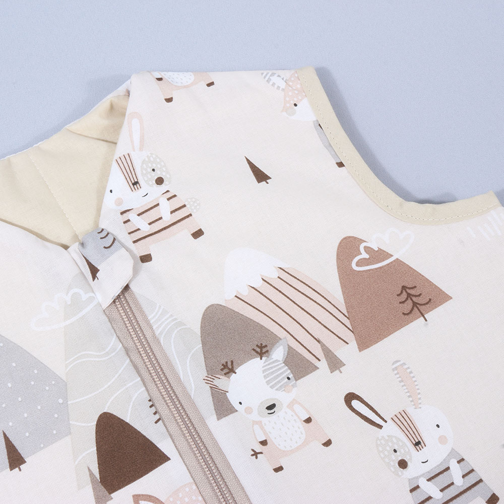 Pagamintas iš 100% natūralios medvilnės su medvilnės užpildu, miegmaišis yra kvėpuojantis, švelnus, šiltas, tačiau su juo neperskaistama. Jis puikiai tinka kūdikiams, kurie naktimis mėgsta spardytis ar nusikloti antklodę – čia jiems bus pakankamai vietos judėti, bet tuo pačiu visada išliks šiltai pridengti.