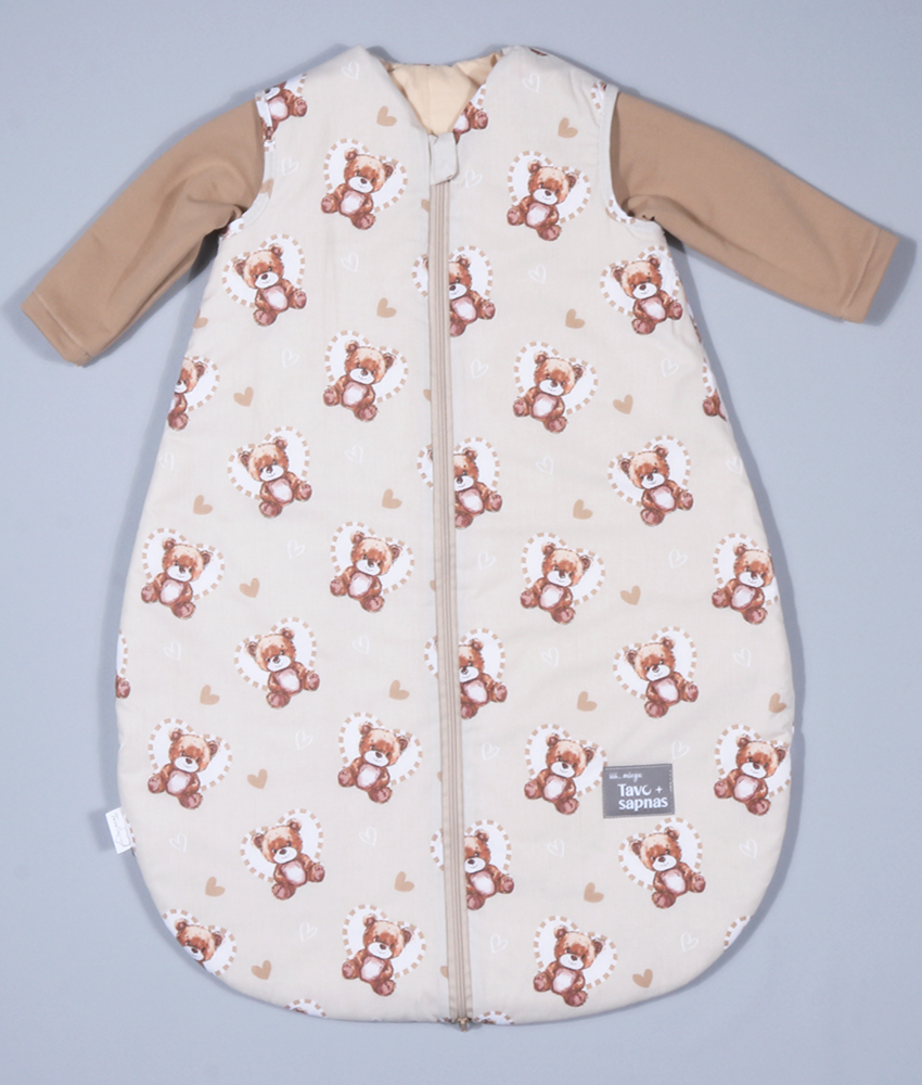 Medvilninis miegmaišis kūdikiui su rankovėmis – natūralus, švelnus ir siūtas Lietuvoje