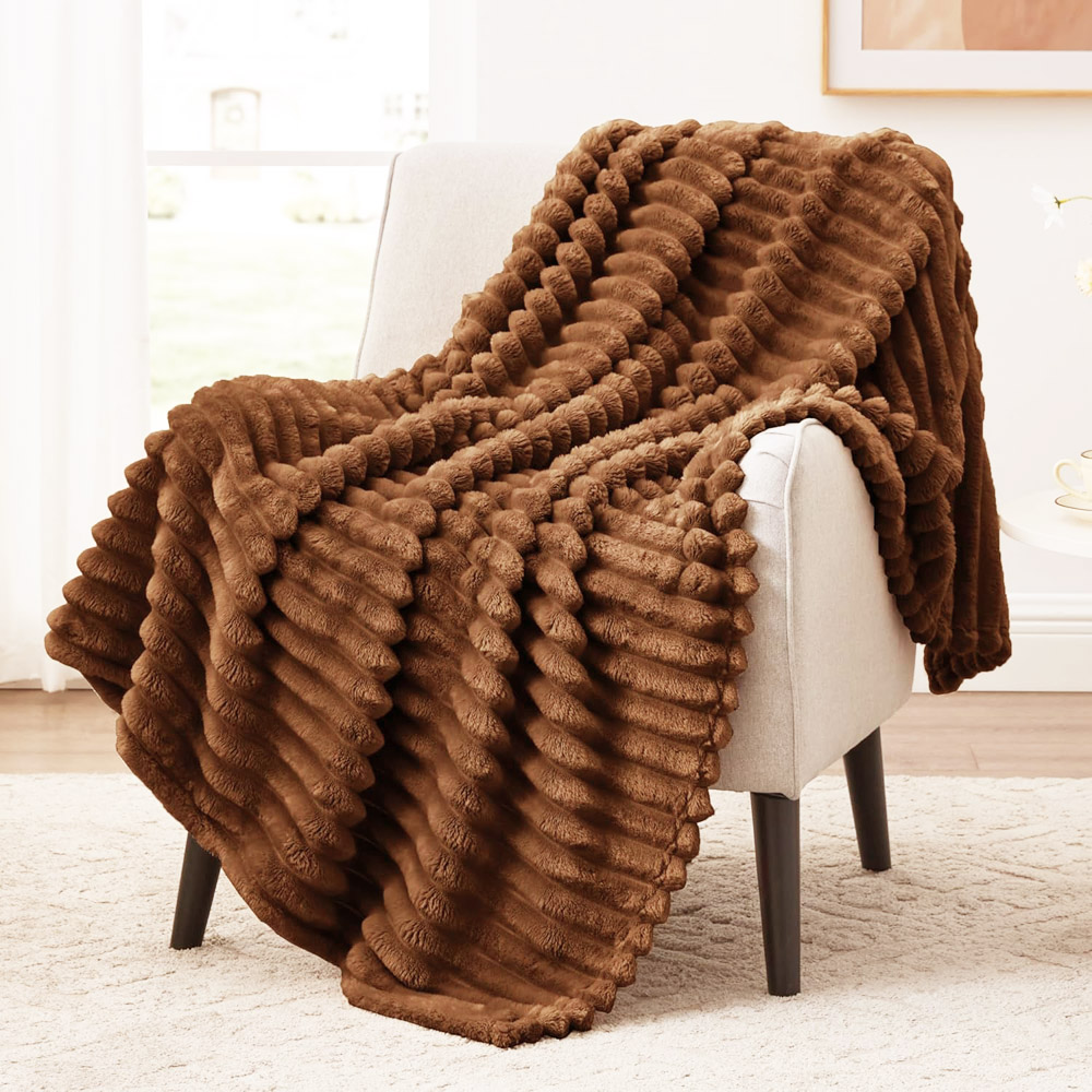 Pledas pagamintas iš itin minkštos medžiagos, kuri apgaubia kūną švelnia šiluma. Jo paviršius dekoruotas subtiliu, plačių reljefinių juostų raštu, suteikiančiu elegancijos ir modernumo. Toks šiltas pledas užtikrina puikią šilumos izoliaciją, todėl tai idealus pasirinkimas šaltiems vakarams tiek miegamajame, tiek svetainėje.